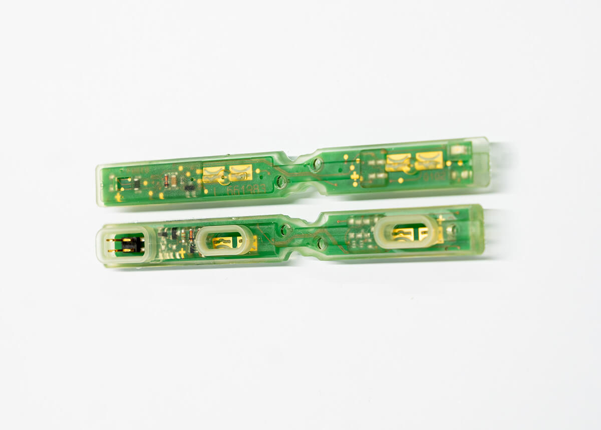 Wenn Sie elektronische Komponenten herstellen, die optimal vor Feuchtigkeit geschützt oder elektrisch isoliert werden müssen, bietet Ihnen unser innovatives Verfahren eine zuverlässige Lösung. Unsere Technologie ermöglicht es, empfindliche elektronische Bauteile in einem einzigen Schritt sicher zu umspritzen oder gezielt zu verfüllen. Dabei reduzieren wir die Anzahl der benötigten Komponenten und Montageschritte deutlich – bei optimalen Voraussetzungen lassen sich bis zu 70% der Einzelteile einsparen. Das Ergebnis: stark verkürzte Fertigungszeiten und eine kosteneffiziente Produktion bei gleichzeitig erhöhter Prozesssicherheit – unser modernes Spritzgussverfahren überzeugt und ersetzt damit den klassischen Verguss.